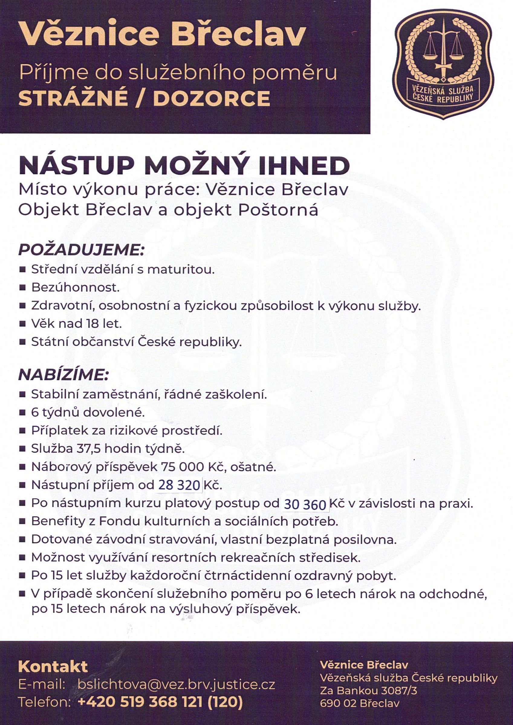 Věžnice Břeclav - strážní/dozorci - leták přiložen