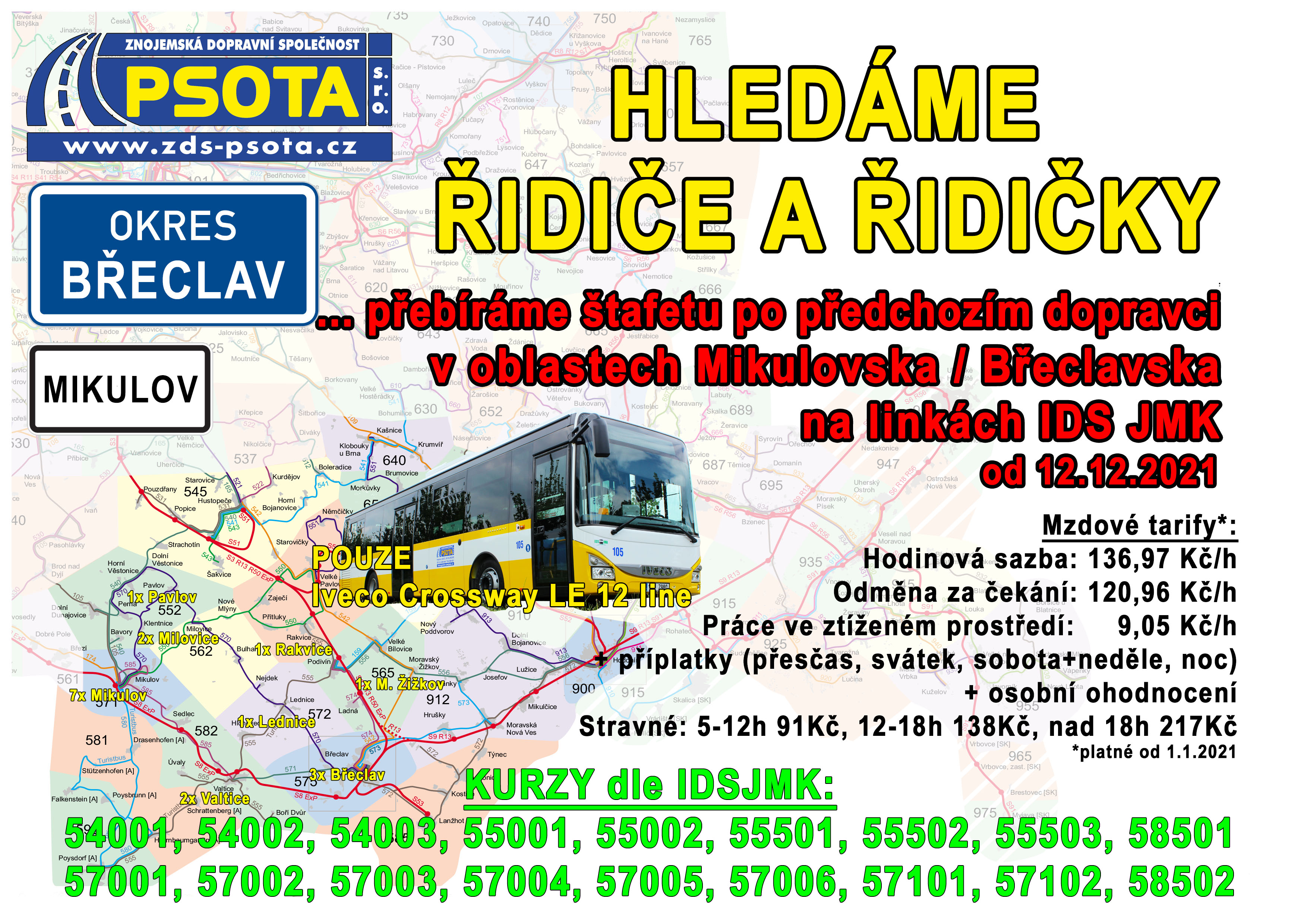 Znojemská dopravní společnost PSOTA, s.r.o. - nábor řidičů autobusů - leták přiložen