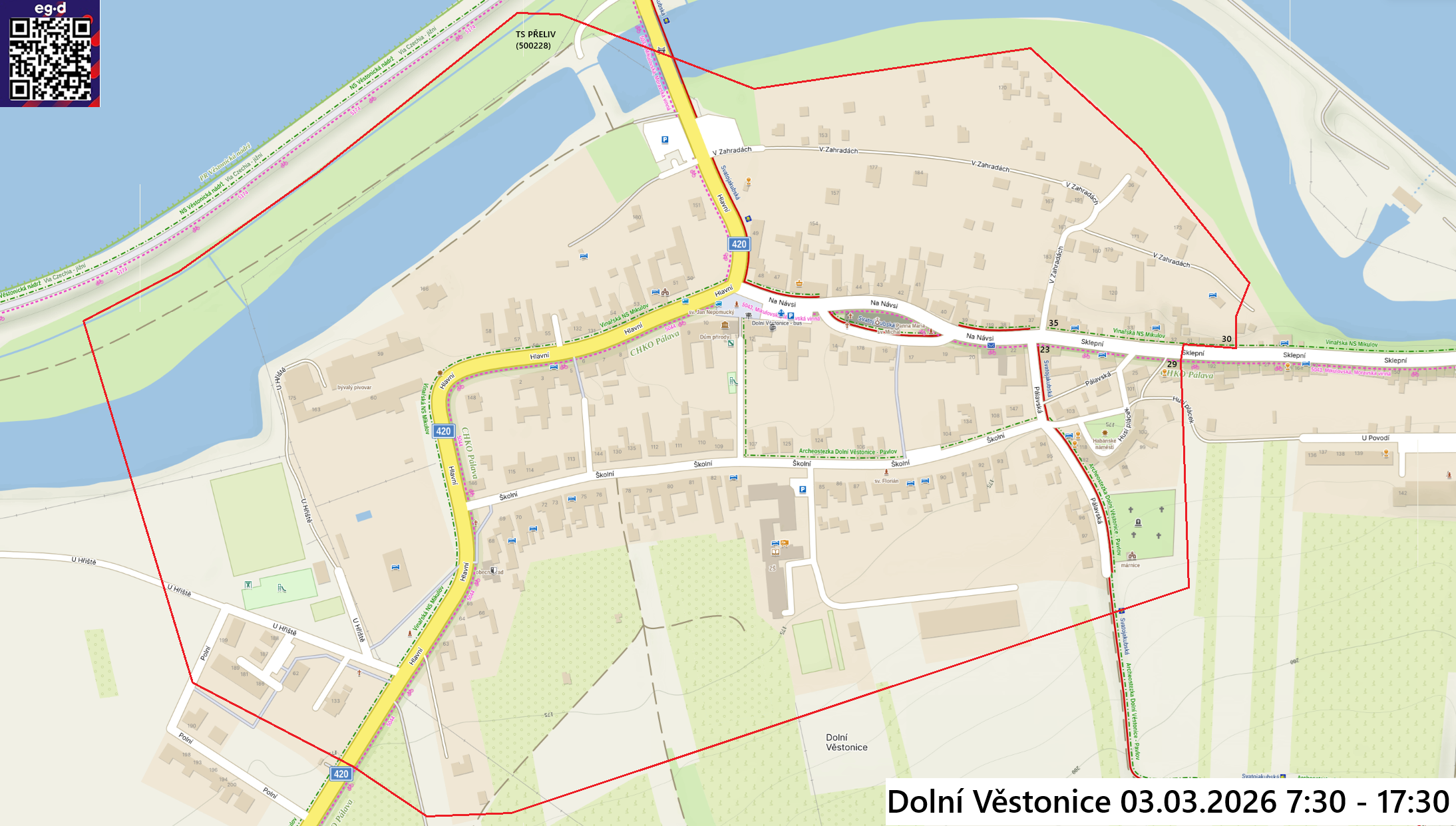 v úterý 03.03.2026 od 7:30 do 17:30 hodin - celá ulice Hlavní, U Hřiště, Školní, Pálavská, Na Návsi, Husí plácek, V Zahradách a část ulice Sklepní a Polní